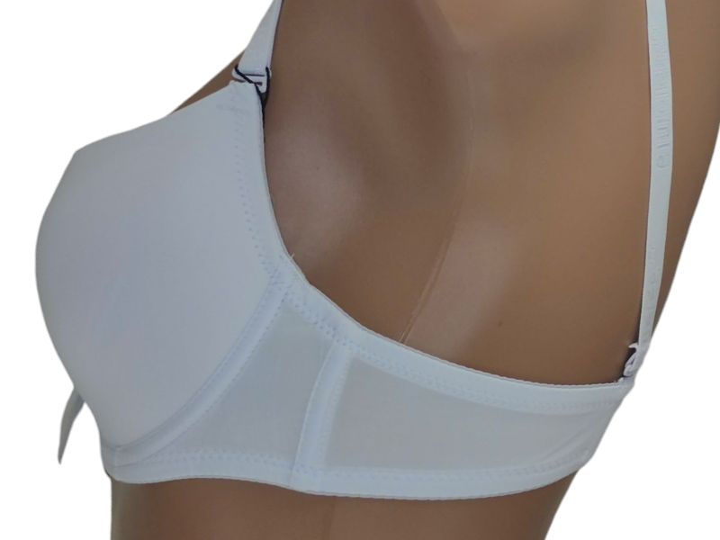 Бюстгальтер в стислому дизайні. Гладка чашка С на тонкому поролоні. Знімні, регульовані бретелі та застібка ззаду на два гачки з чотирма позиціями регулювання.