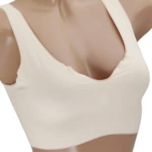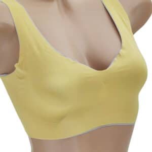 Бюстгальтер безшовний, без кісточок. Чашка С. Виконаний із еластичної мікрофібри. Оригінальні забарвлення роблять новинку неймовірно красивою та жіночною, а м’які чашки без кісточок не здавлюють і бездоганно підтримують груди, даруючи максимальний комфорт, свободу та впевненість у рухах. У бюстгальтері-топі є поролоновий вкладиш, який легко виймається.