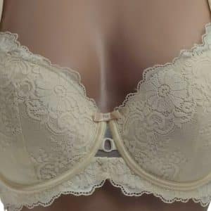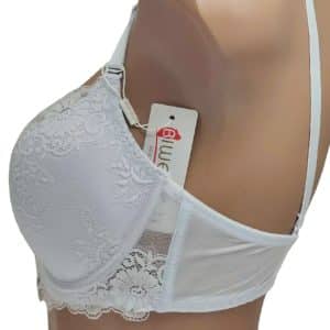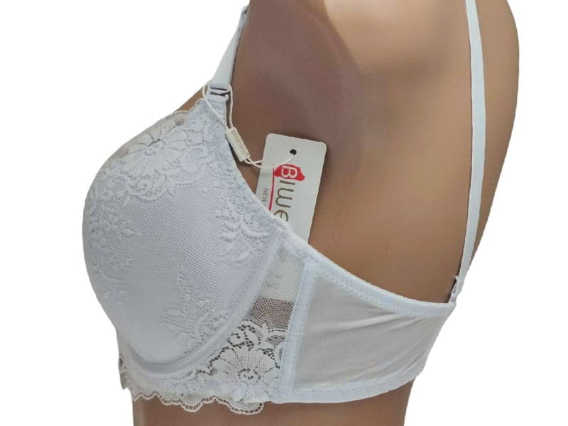 Вишуканий бюстгальтер на м’якій тонкій чашці З повномірного розміру. Виконаний із мережива квіткового візерунка. Пояс бра — ніжна, пружна сітка. Знімні, регульовані бретелі та застібка ззаду на три гачки з чотирма позиціями регулювання.