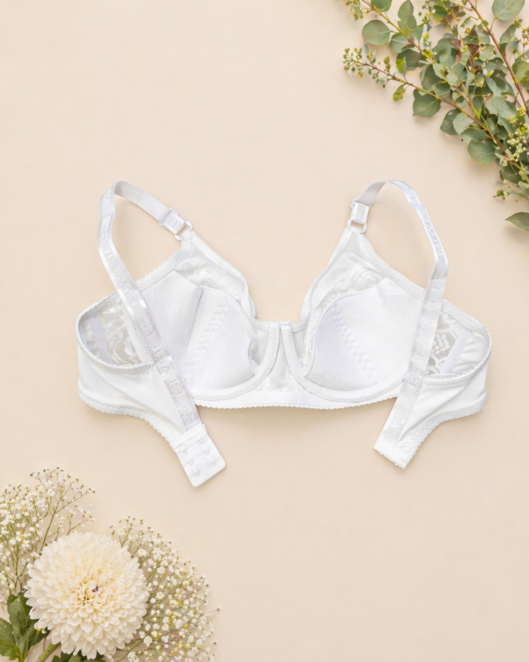 Бюстгальтер на м’якій чашці повномірного розміру С. Чашка виконана з м’якого квіткового мережива та м’якої пружної сіточки, має бавовняну поролонову вставку. Пояс бюстгальтера виконаний із еластичної мікрофібри. Широкі незнімні регульовані бретельки та застібка ззаду на два гачки з трьома позиціями регулювання.