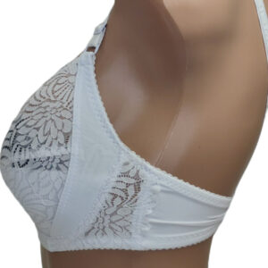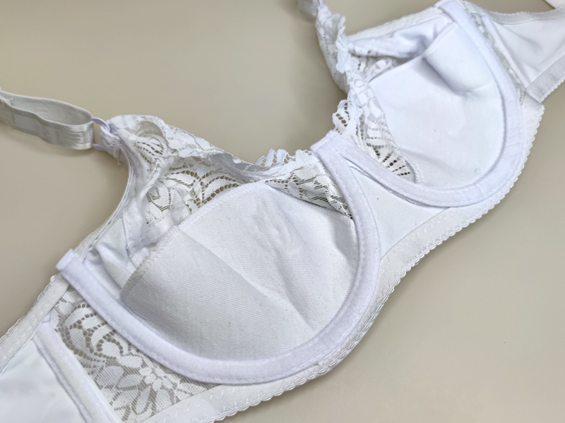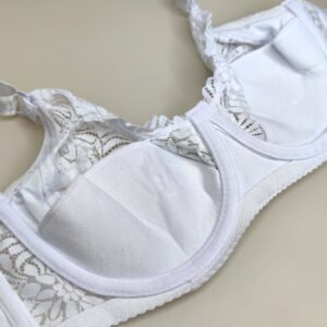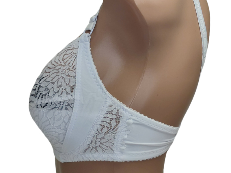 Бюстгальтер на м’якій чашці D, внизу якої є тонка бавовняна вставка з поролону. Виконаний з м’якого мережива у квітковий візерунок. Широкі незнімні бретельки.