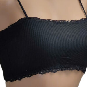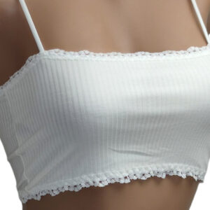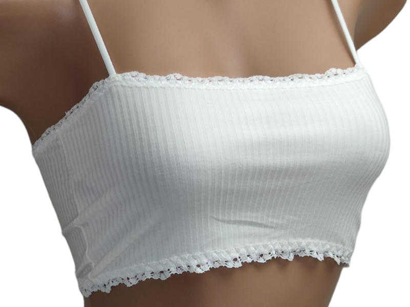 Укорочений топ Бандо має практично необмежену кількість способів застосування та ідеально доповнює класичний, спортивний чи повсякденний образ. За рахунок м’якого трикотажу (у рубчик), тонких бретелів і застібки ззаду, топ забезпечує максимальний комфорт і підтримку навіть при найінтенсивніших навантаженнях. У топі є тонкий поролоновий вкладиш, який легко виймається. По краях топа є мереживо, що робить топ Бандо ще вишуканішим.