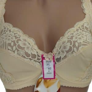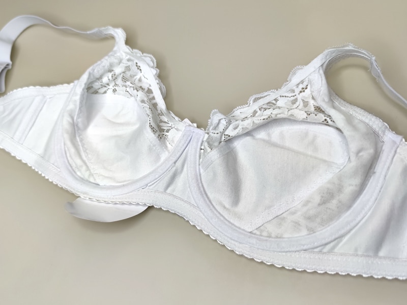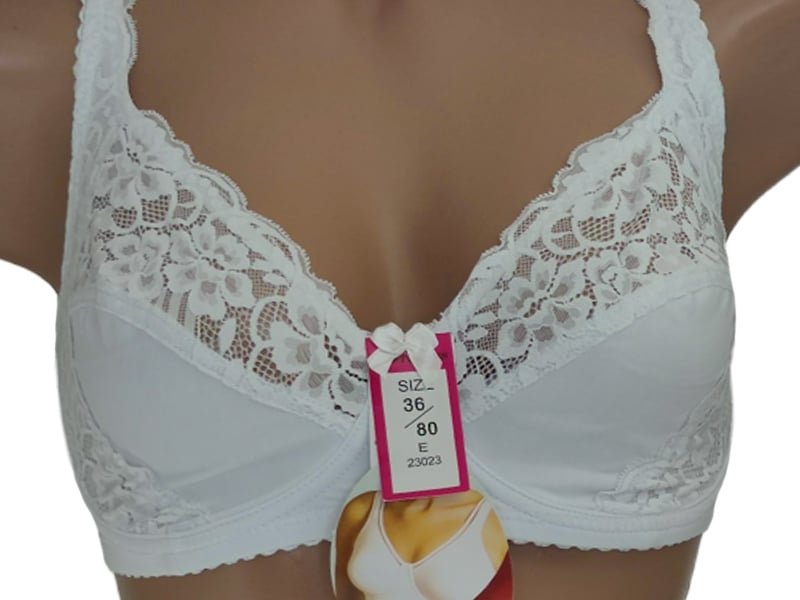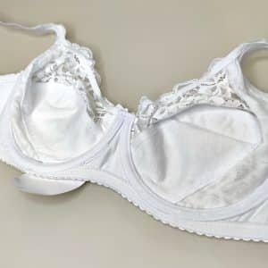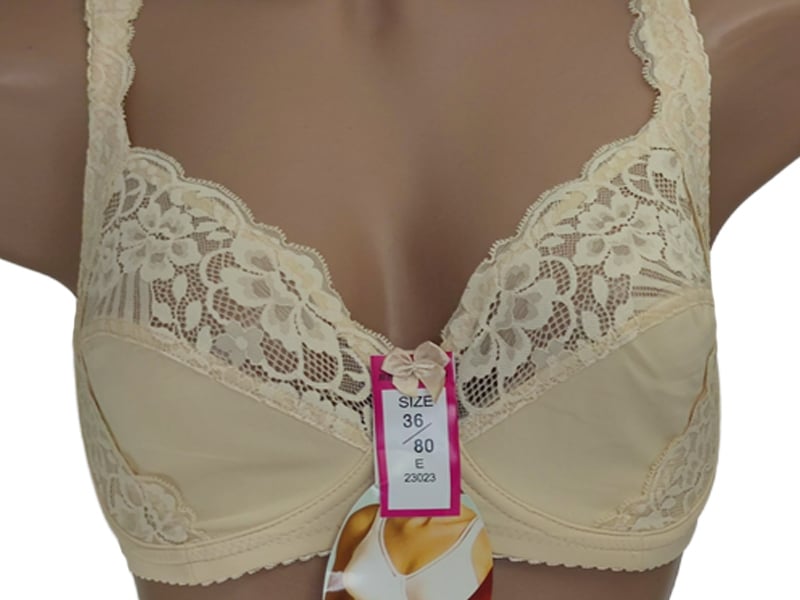 Бюстгальтер на м’якій чашці розміру Е. Низ чашки – мікрофібра, має тоненьку бавовняну вставку. Верхня і бічна частина чашки виконані з м’якого квіткового мережива.