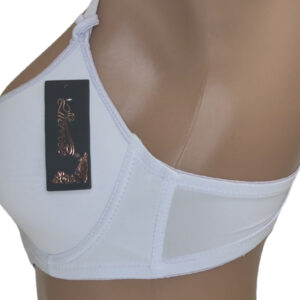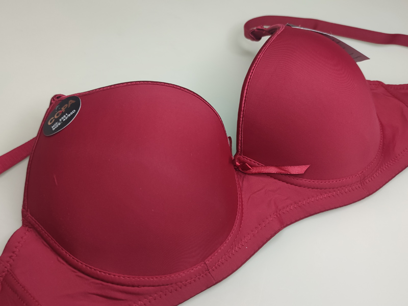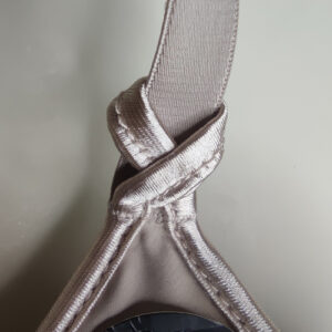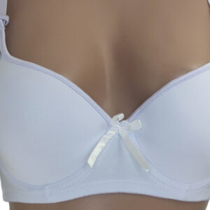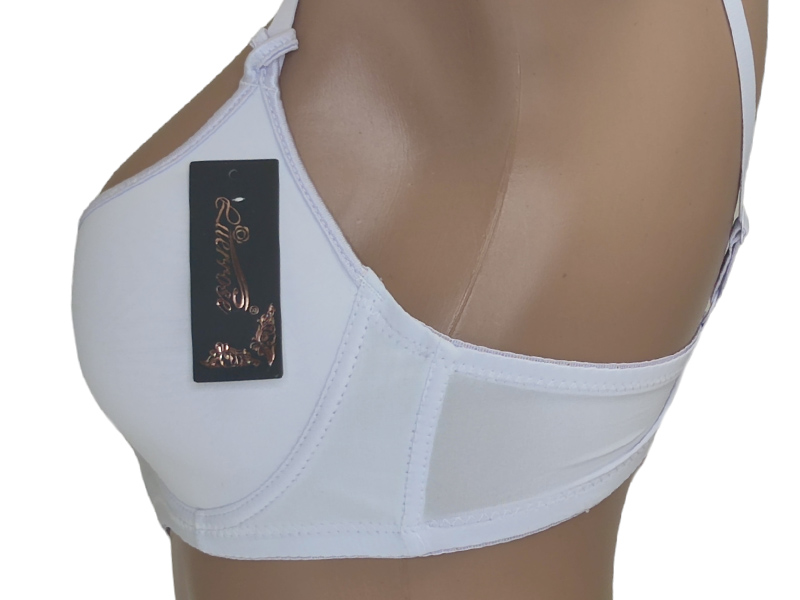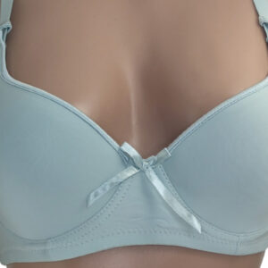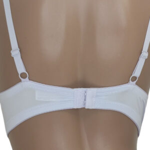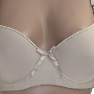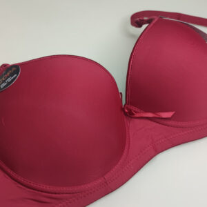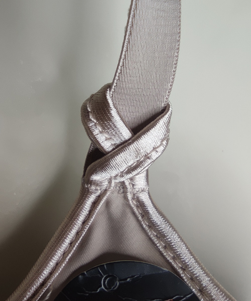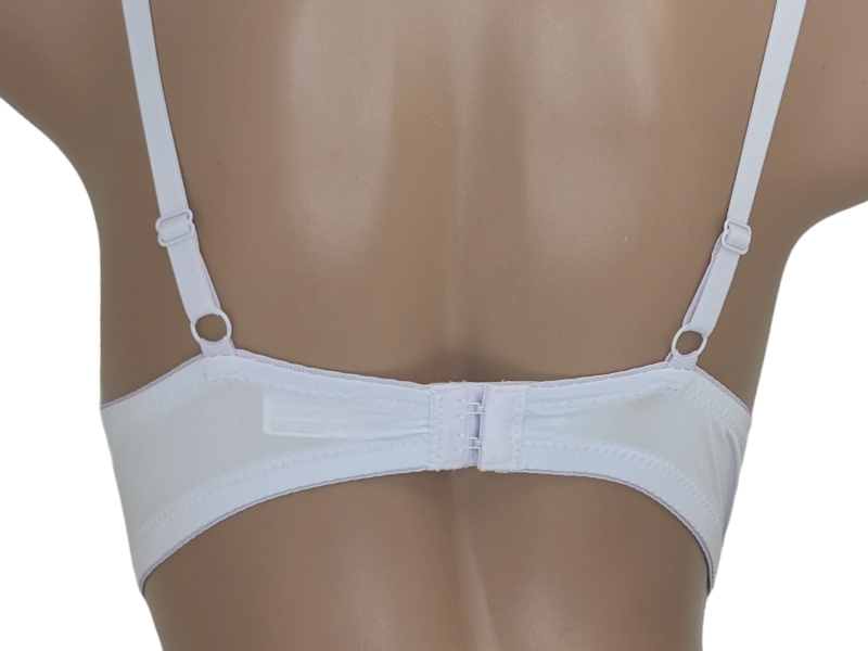 Бюстгальтер в стислому дизайні. Гладка неповномірна чашка D на тонкому м’якому поролоні. Знизу чашки невеликий м’який коректор. Незнімна бретель із оригінальним доповненням.