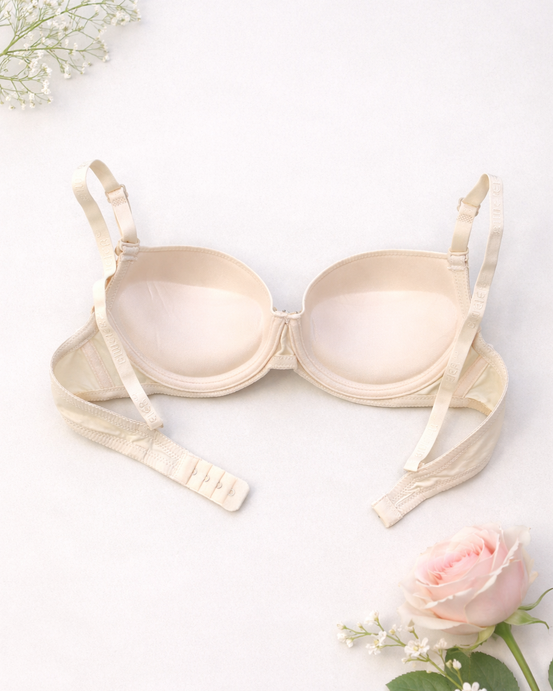 Знімні регульовані бретелі та застібка ззаду на один гачок із чотирма регулювальними позиціями.