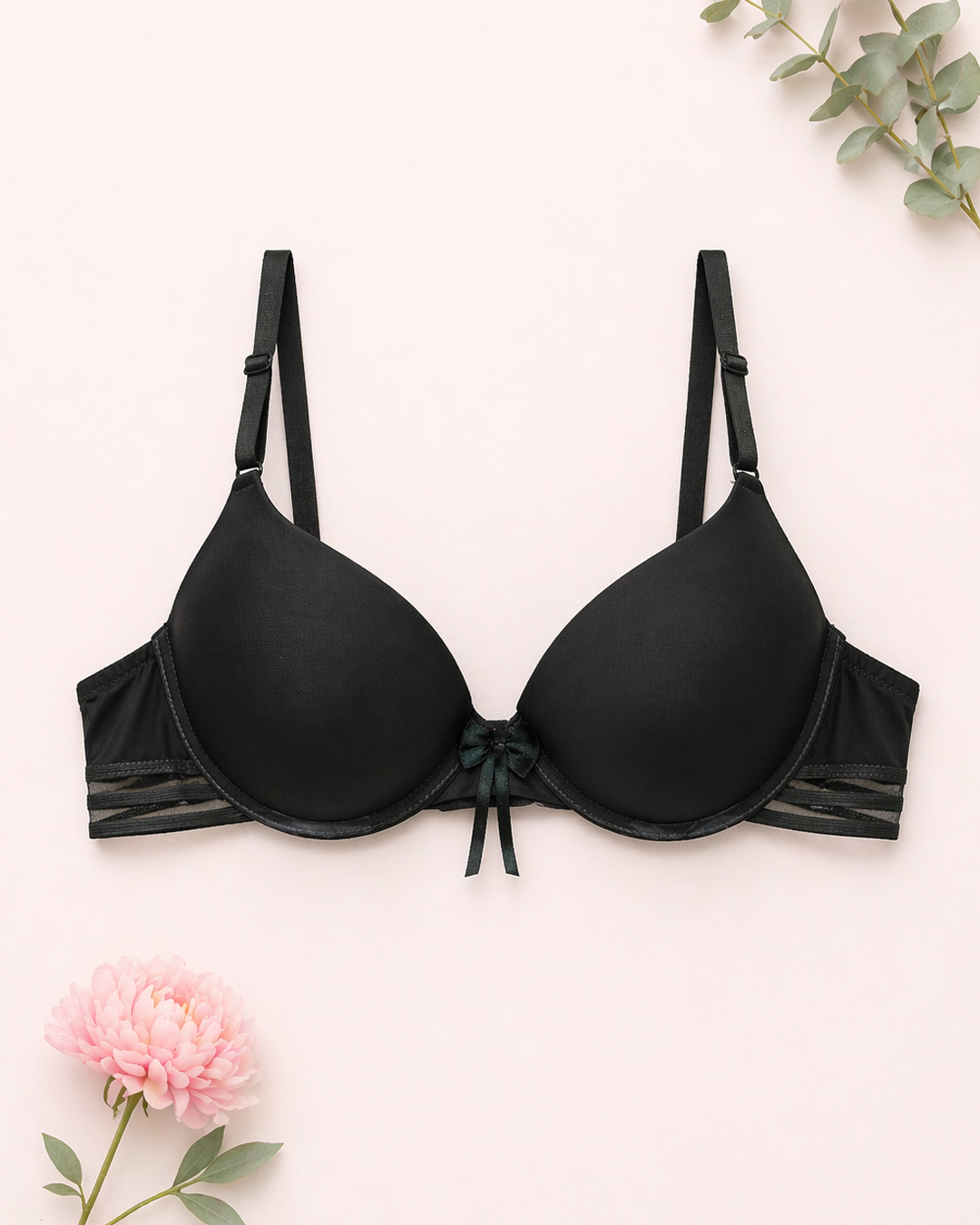 Елегантний бюстгальтер у чашці В, призначений для комфорту та впевненості щодня. Модель поєднує гладкі формовані чашки та стильні напівпрозорі вставки, що надають образу легкості та жіночності.