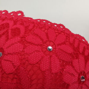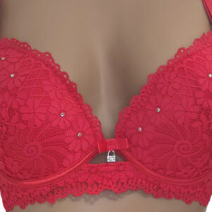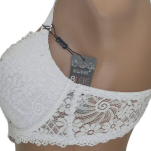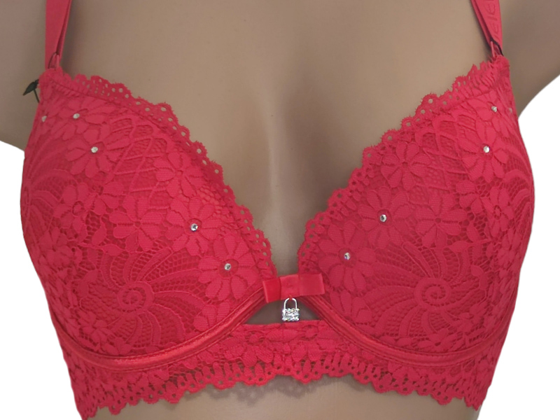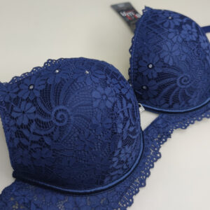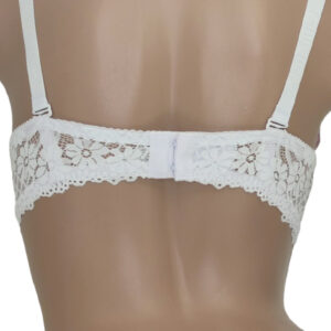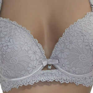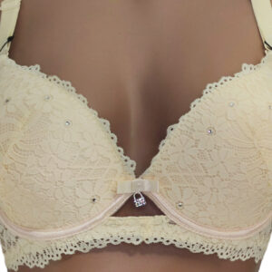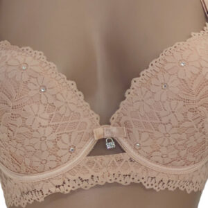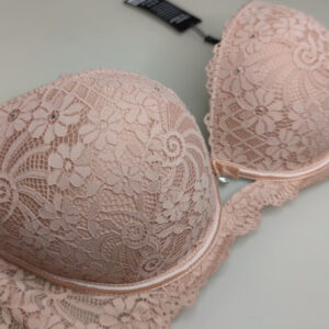 Бра на щільній тонкій чашці С виконаний з еластичного мережива в кокетливий квітковий візерунок. Але абсолютної чарівності та ошатності ця модель досягає за рахунок дизайнерського рішення у вигляді невеликої кількості маленьких стразів.