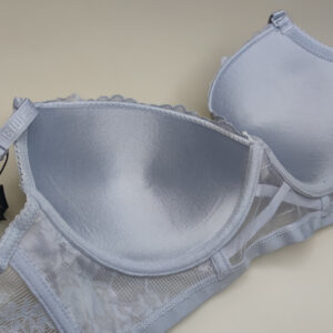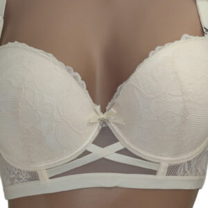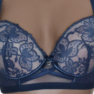 Вишуканий бюстгальтер на щільній тонкій чашці С, виконаний з мережива квіткового візерунка. Пояс бра виконаний з ніжного, пружного мережива. Знімні, регульовані бретелі та застібка ззаду на три гачки з чотирма позиціями регулювання.