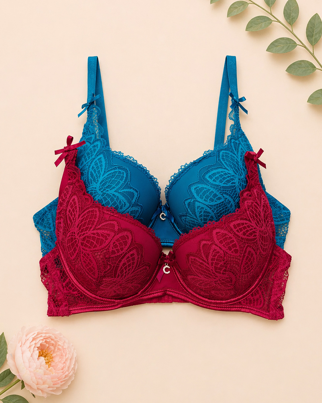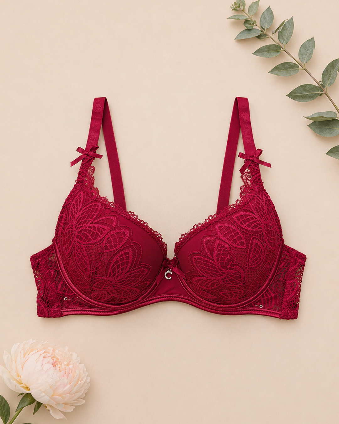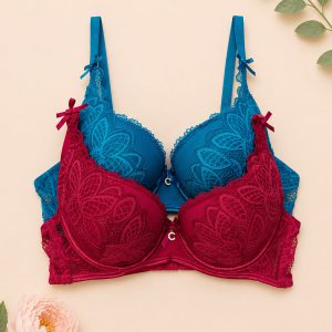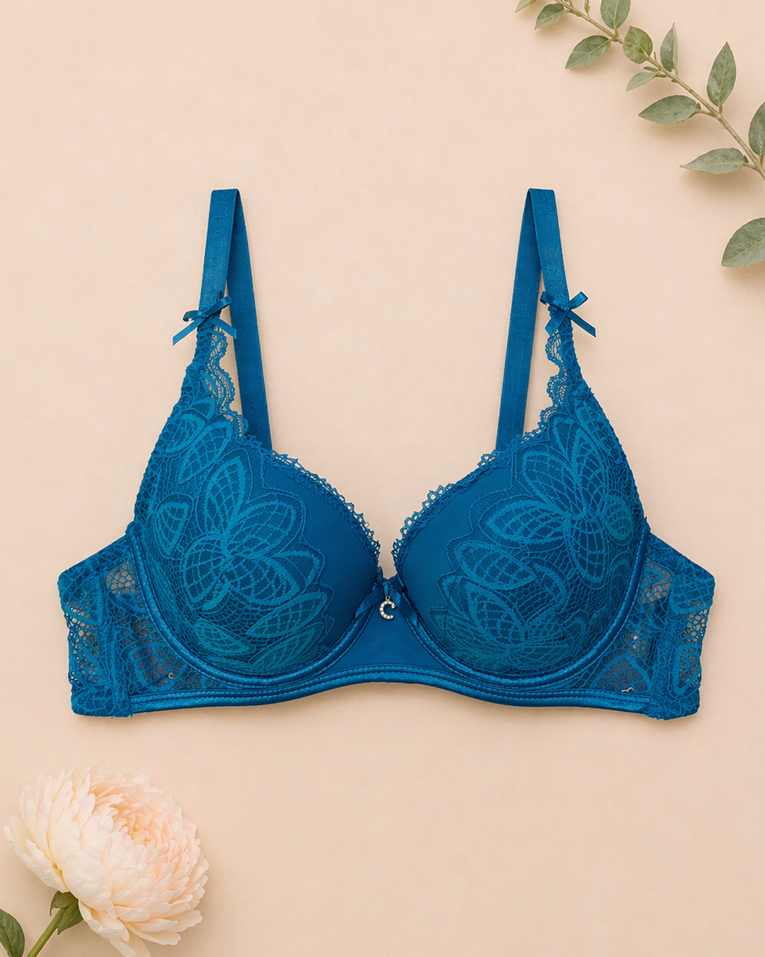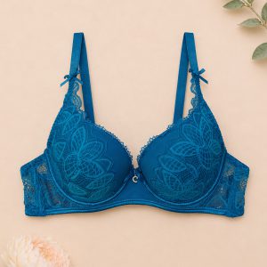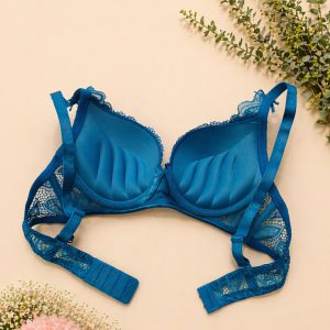 Бра на ажурній щільній чашці розміром В. Низ чашки доповнений пальчиковим Push-Up. Пояс моделі виконаний з ніжного мережива.