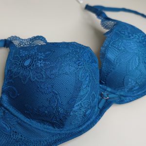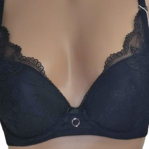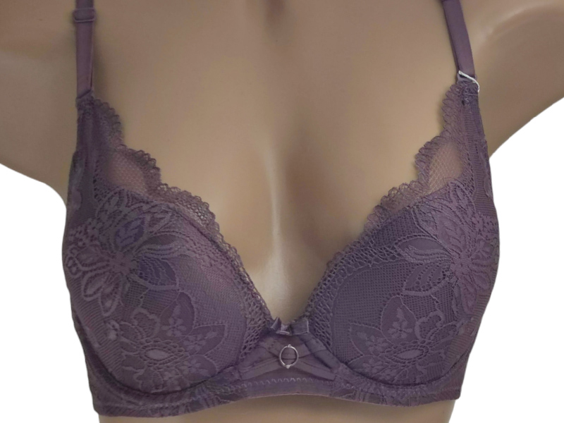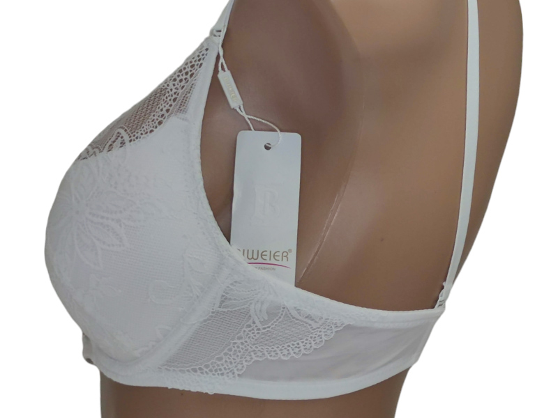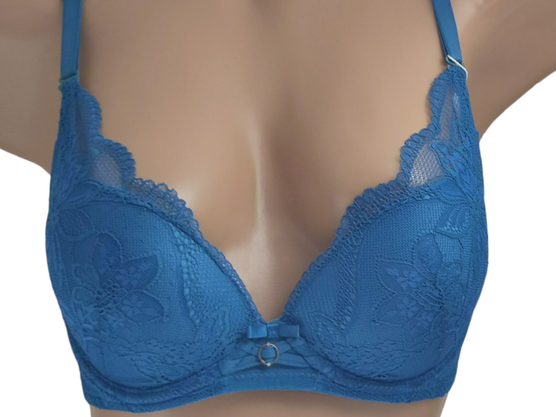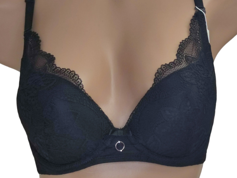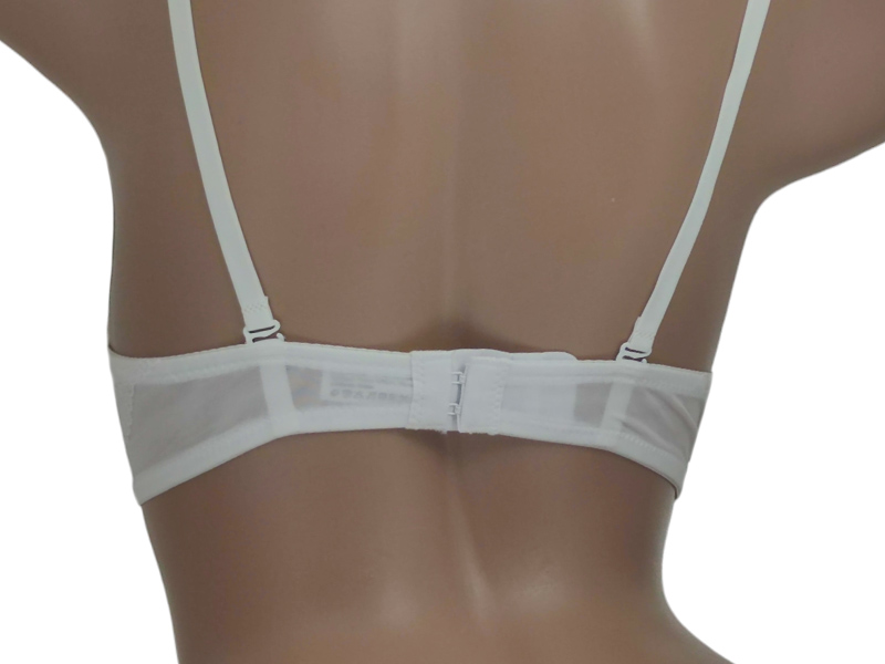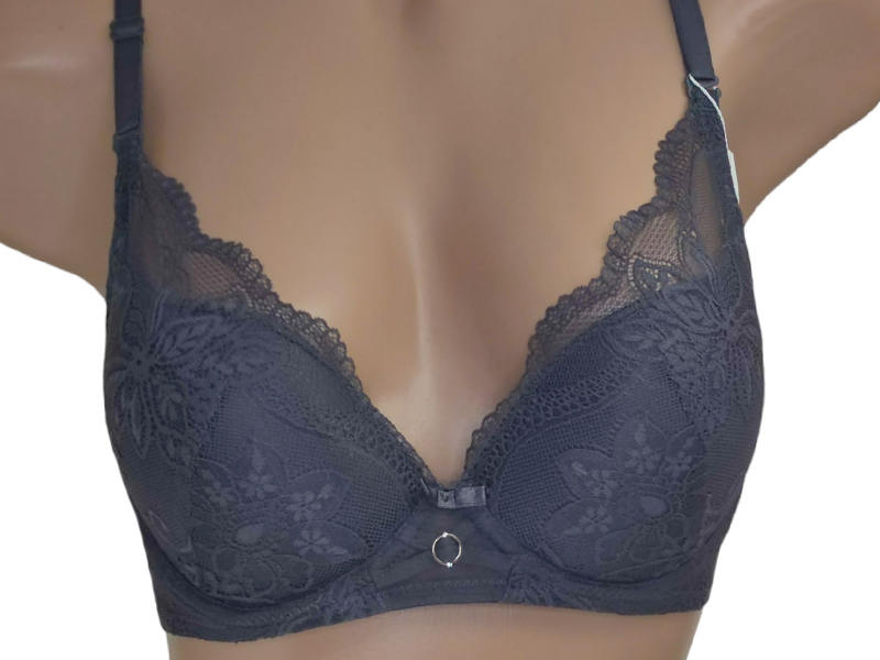 Вишуканий ажурний бюстгальтер на тонкому поролоні. Чашка В. Пояс бра оригінально виконаний з ніжної, пружної сіточки. Знімні, регульовані бретелі та застібка ззаду на два гачки з чотирма позиціями регулювання.