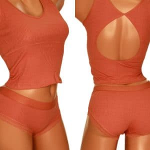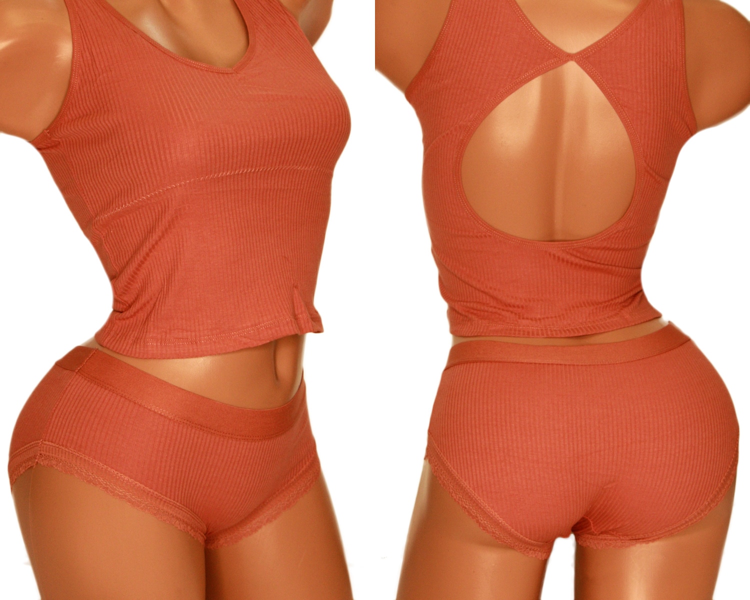 Комплект молодіжний із бавовни в рубчик: трикотажний топ-майка та плавки-сліпи.