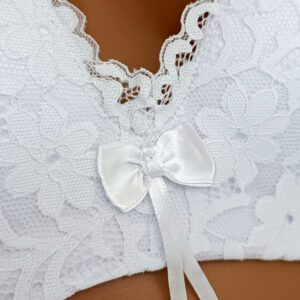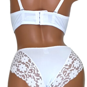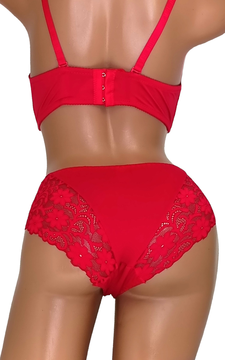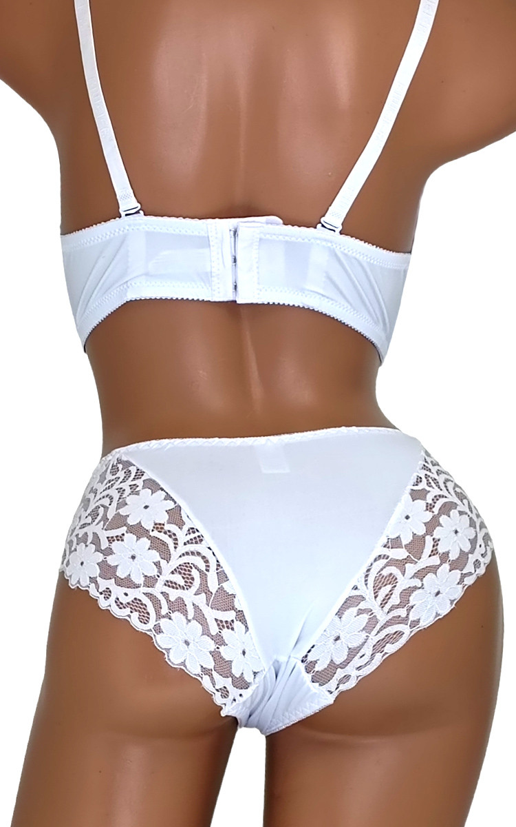Вишуканий комплект складається з формованого бюстгальтера без кісточок розміру С та трусиків сліпів. Виконаний з м’якого, приємного мережива в класичний візерунок. Знімна бретель.