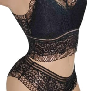 Комплект: топ-майка з легкого, ніжного мережива та ажурні труси-сліпи – нове кохання на кожен день. М’яке мереживо, невагома тканина, актуальні забарвлення роблять новинку неймовірно красивою та жіночною, а м’які чашки без кісточок не здавлюють і бездоганно підтримують груди, даруючи максимальний комфорт, свободу та впевненість у рухах. У топі є поролоновий вкладиш, який легко виймається. На бретельках присутні регулятори, що дозволяє коригувати довжину топа в залежності від зростання. Ластівиця трусиків виконана з бавовни.