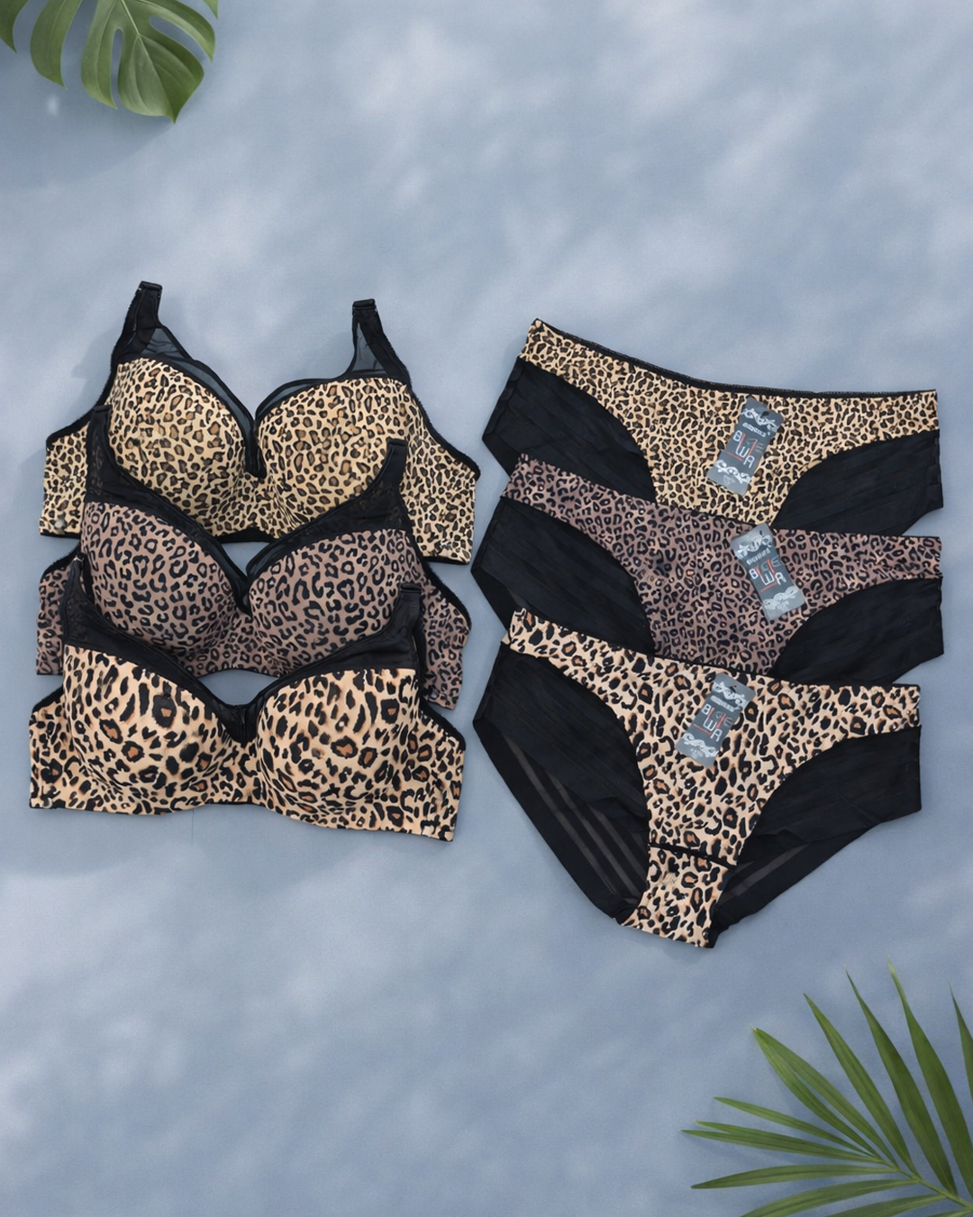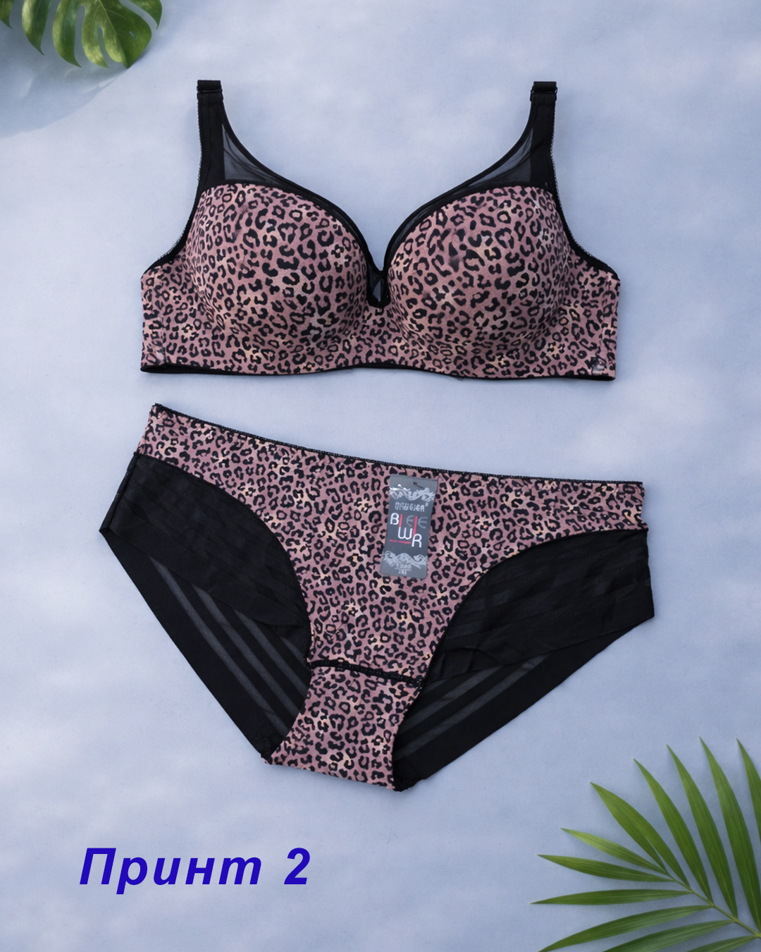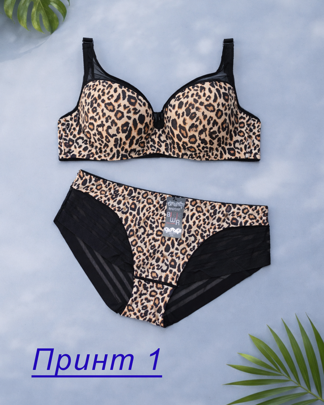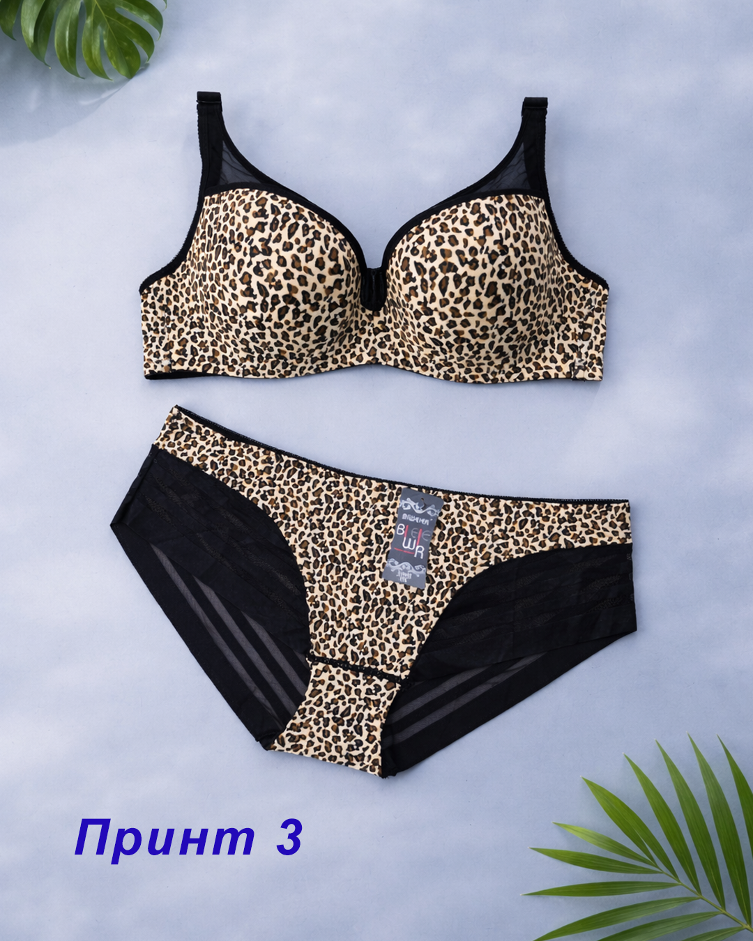 Комплект жіночої білизни з леопардовим принтом у повномірній чашці D.
