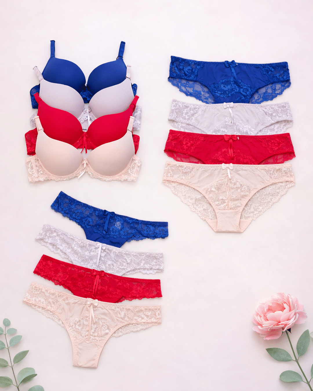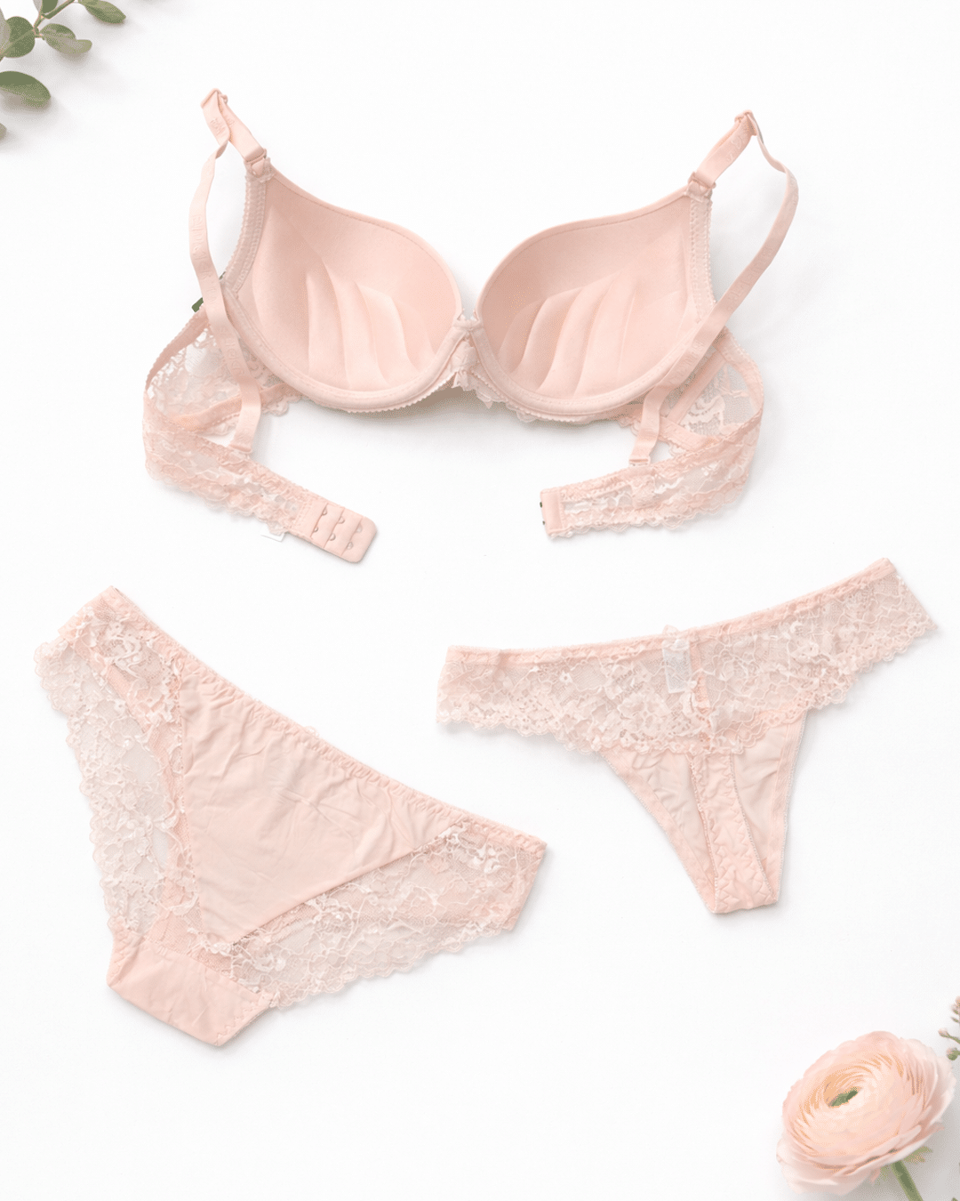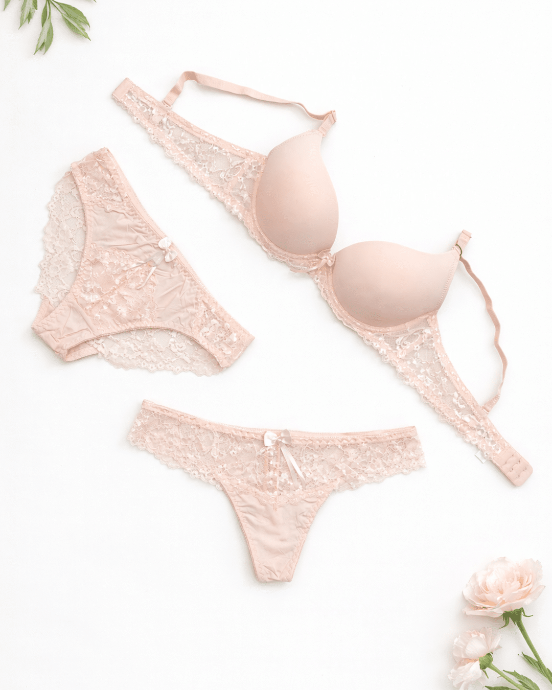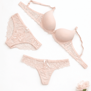 Комплект включає: бюстгальтер розміру С, трусики сліпи і трусики-стрінги.