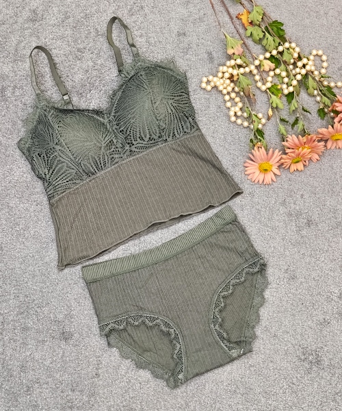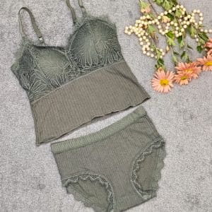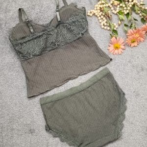 Комплект: топ-майка з легкого, ніжного трикотажу і труси-сліпи – нова любов на кожен день. М’яке мереживо, невагома тканина, оригінальні забарвлення роблять новинку неймовірно красивою і жіночною, а м’які, ажурні чашки без кісточок не здавлюють і бездоганно підтримують груди, даруючи максимальний комфорт, свободу і впевненість у рухах. В топі присутній поролоновий вкладиш з невеликим Push-up, який легко виймається. На бретельках присутні регулятори, що дозволяє коригувати довжину топа в залежності від зростання. Ластовиця трусиків виконана з бавовни.