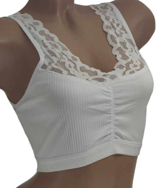 Бра — топ из нежного хлопка и кружева – новая любовь на каждый день. Приятная ткань, классические расцветки делают новинку невероятно красивой и женственной, а мягкие чашки без косточек не сдавливают и безупречно поддерживают грудь, даря максимальный комфорт, свободу и уверенность в движениях.