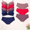 Комплект: бюстгальтер формованный, без косточек в чашке D и бесшовные трусики слипы.