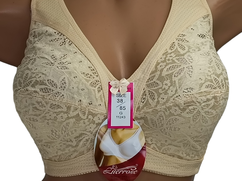 Модный мягкий бюстгальтер из элегантного кружева. Чашка G. Сшит из двух слоёв ткани: ближе к телу — хлопок, внешний слой — мягкое кружево. Модель предназначена для поддержки пышной груди.