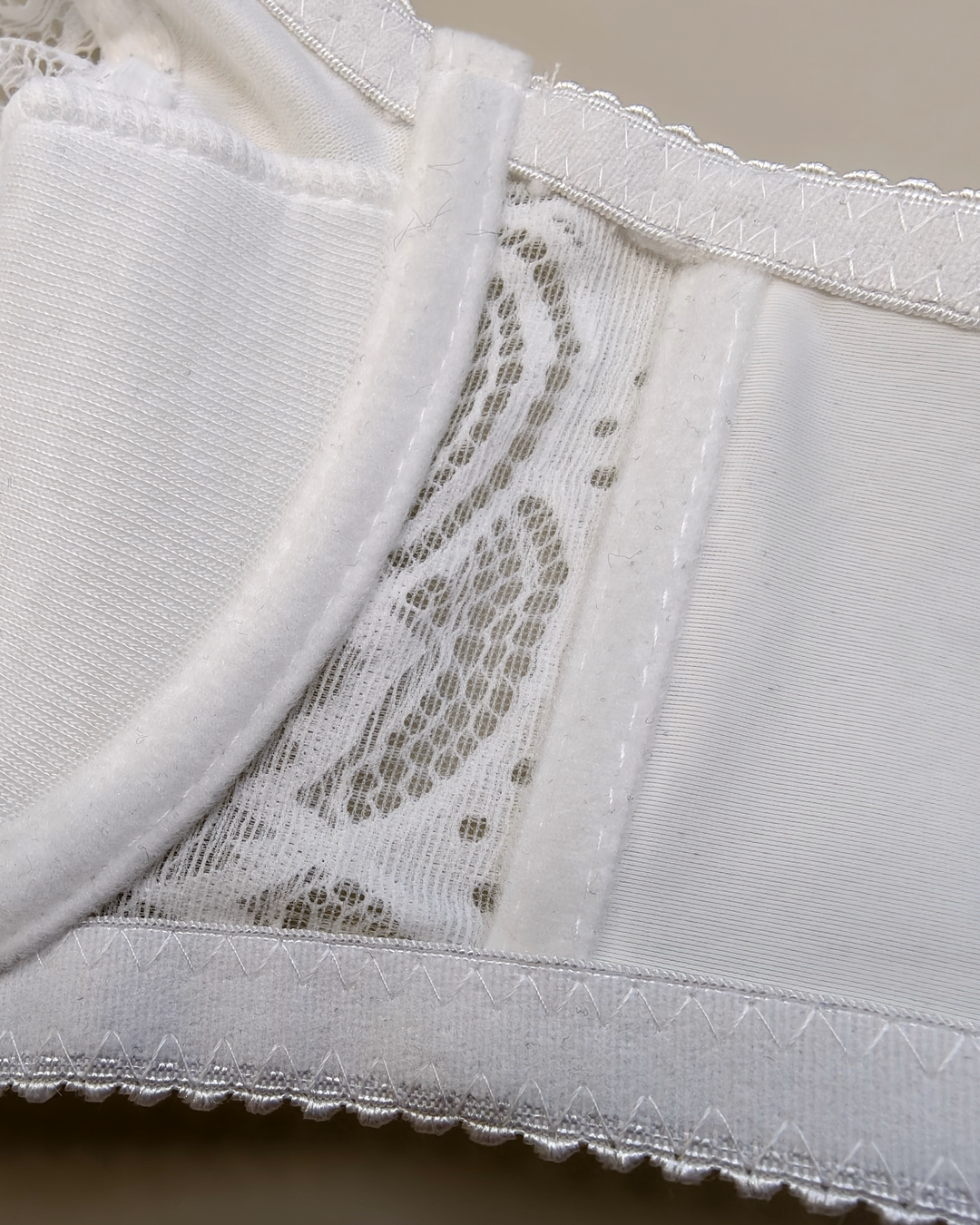 Широкие несъемные бретельки и застёжка сзади на два крючка с тремя позициями регулирования.