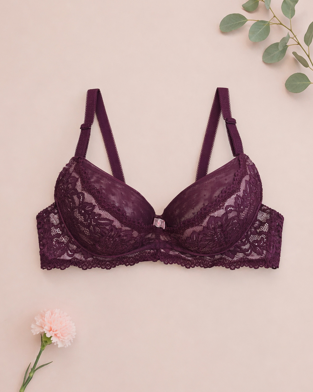 Изысканный бюстгальтер на плотной тонкой чашке В, выполнен из мягкого, приятного кружева в классический узор.