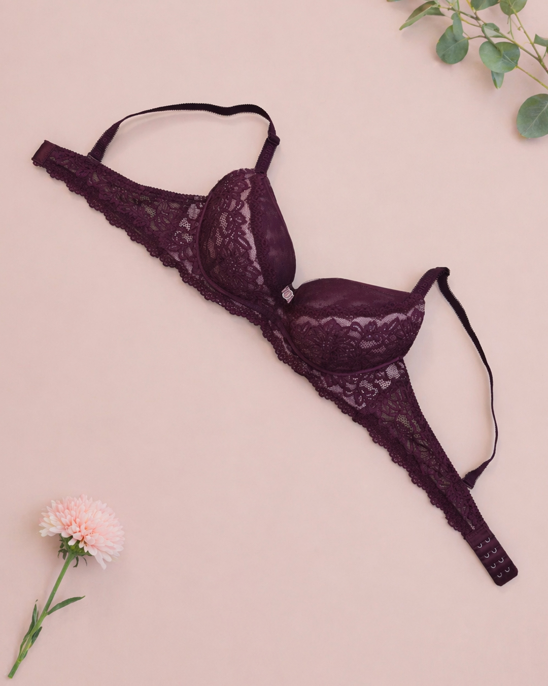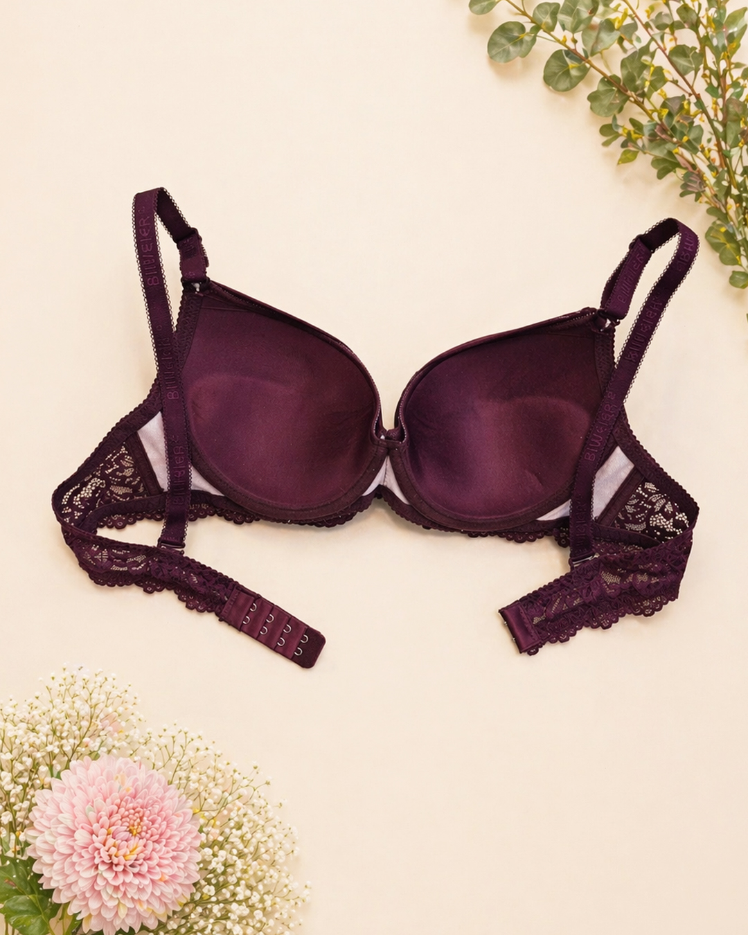 Низ чашки — мягкий корректор, что позволяет придать красивую форму груди. Съёмная регулируемая бретель и застёжка сзади на два крючка с четырьмя позициями регулирования.