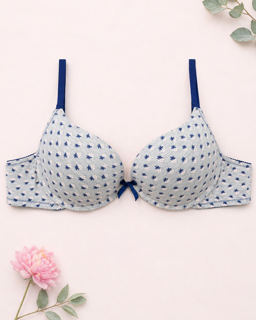 Нежный базовый оттенок с деликатным принтом создает женственный и аккуратный вид. Бюстгальтер гармонично сочетается с базовым бельем и подходит под любую одежду.
