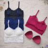 Бюстгальтер на мягкой чашке размера F. Чашка выполнена из мягкого цветочного кружева и мягкой упругой сеточки, имеет хлопковую поролоновую вставку. Пояс бюстгальтера выполнен из эластичной микрофибры. Широкие несъемные бретельки.