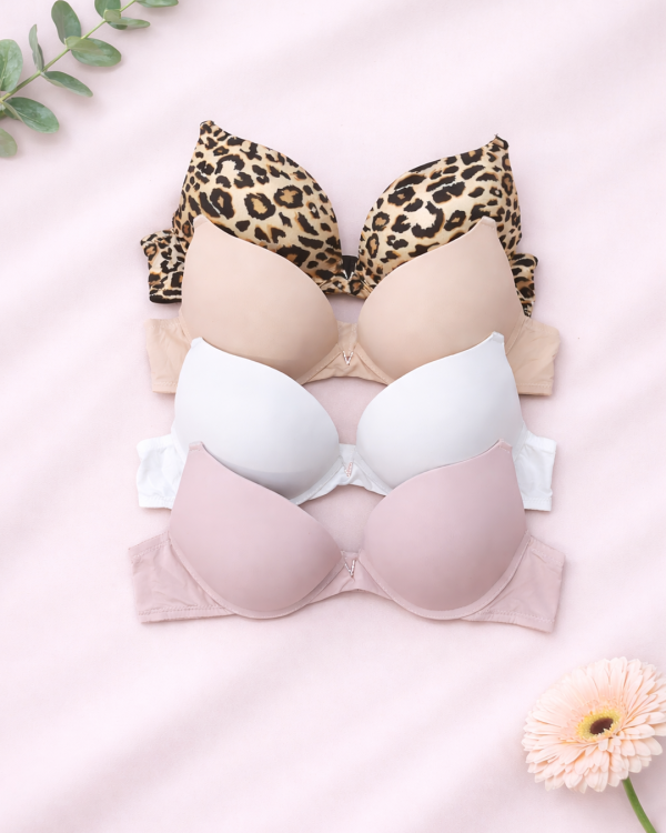 Изысканный бра без косточки на твердой, открытой чашке В из нежной микрофибры. Боковая и нижняя часть чашки – Push-up, прекрасно поднимающий грудь и создающий эффект полной груди.