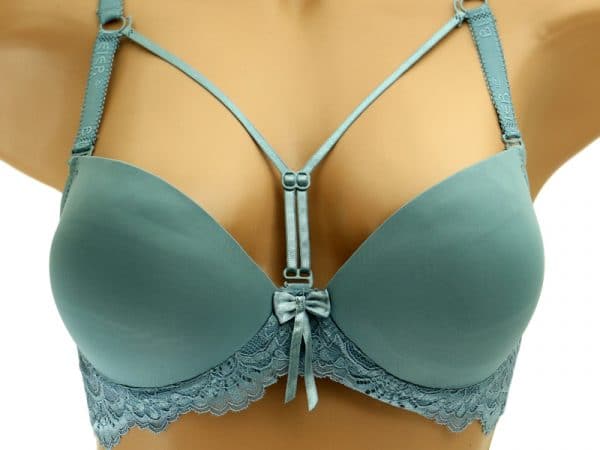 Бюстгальтер гладкий. Чашка В. Низ чашки Push-up. Передняя верхняя часть бюстгальтера декорирована съемной бретелью.