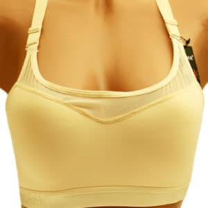 Вместо косточек чашки дополнены плотным швом и широкой резинкой, которые помогают красиво смоделировать грудь.