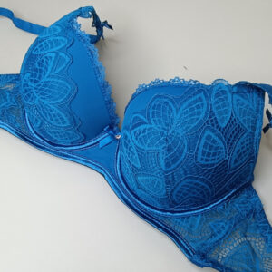Бра на ажурной плотной чашке в размере В. Низ чашки дополнен пальчиковым Push-Up. Пояс модели выполнен из нежного кружева. Несъёмные бретели.