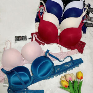 Бра с эффектом Push-Up размера С. Чашечки гладкие, выполнены из микрофибры. Стилистику модели продолжает и дополняет нежный кружевной пояс.