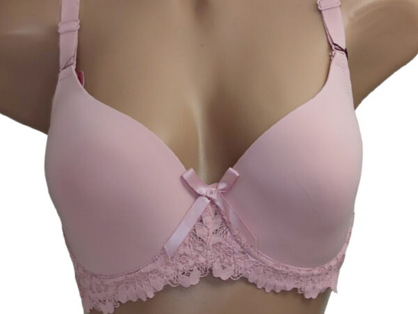 Бюстгальтер гладкий, полномерная чашка D, на тонком поролоне. Снизу чашки небольшой мягкий корректор. Пояс бра выполнен из приятного кружева в классическом цветочном узоре, с застёжкой на три крючка. Съёмная бретель.