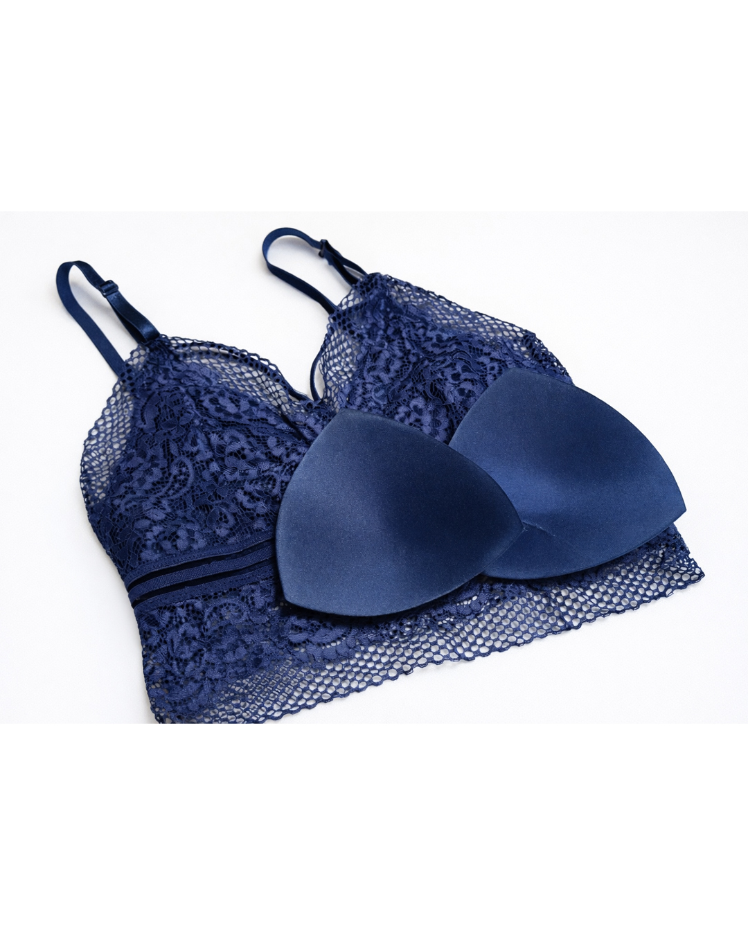 Комплект: топ из легкого, нежного кружева и ажурные трусы-слепые – новая любовь на каждый день. Мягкое кружево, невесомая ткань, актуальные расцветки делают новинку невероятно красивой и женской, а мягкие чашки без косточек не сдавливают и бесспорно поддерживают грудь, даря максимальный комфорт, свободу и уверенность в движениях. В топе присутствует легко вынимаемый поролоновый вкладыш. На бретельках присутствуют регуляторы, позволяющие скорректировать длину топа в зависимости от роста. Ласточка трусиков выполнена из хлопка.