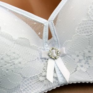 Изысканный комплект состоит из бюстгальтера размера В и трусиков слипов. Выполнен из мягкого, приятного кружева в классический узор. Съемная бретель.