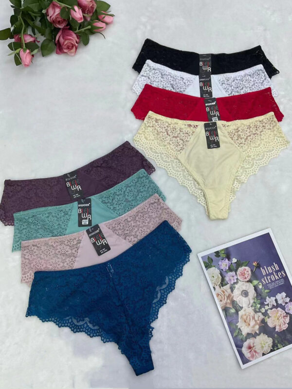 Трусы бразильяна комбинированные: микрофибра – кружево. Батальные. Средняя линия пояса.