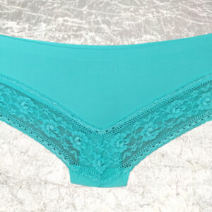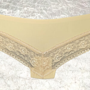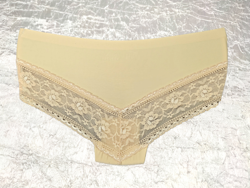 Трусы бразилианы-бриф комбинированные: низ — мягкое кружево, верх — бесшовная эластичная ткань. Красивая молодёжная модель.