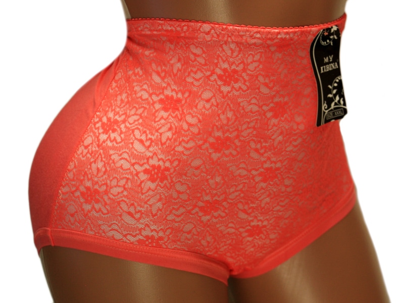 Высокие трусы-плавки с утягивающим эффектом. Перёд декорирован кружевом.